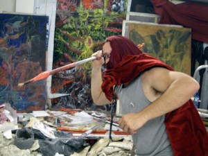 Només cal mirar el seu estudi. Molt a prop de la plaça dels Països Catalans de Girona, es tracta d’un camp de batalla on l’únic supervivent s’inventa tots els personatges possibles amb la finalitat darrera (i una mica desesperada) d’escenificar una tragèdia (amb molts elements còmics) que no és altra que la de la vida i la seva precària possibilitat. L’artista es transmuta en una mena de parca inversemblant que acumula rera seu, com l’Angelus Novus de Klee, les runes de la història… El cercle, per descomptat, no es tanca.