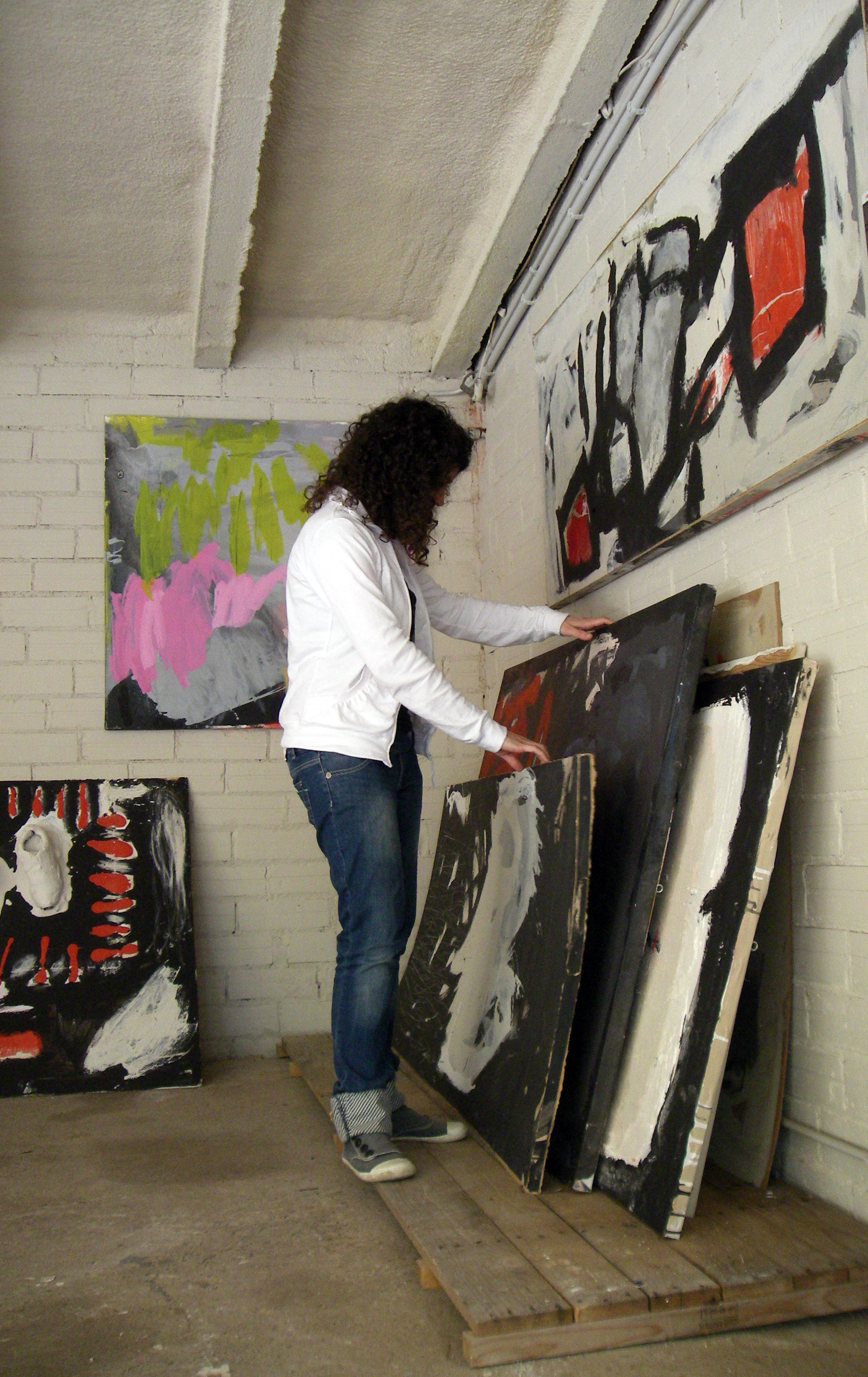 L’estudi de Puigbaldoyra —confessa amb ironia l’artista— ocupa l’espai d’una antiga cort de porcs que ella mateixa ha condicionat: de fet, a banda de pintar, no té cap problema a l’hora d’arremangar-se i fer de paleta, o pujar al tractor o, també, ajudar a la Magdalena a amassar uns bunyols senzillament excepcionals que mereixerien un article per a ells tot sols… És clar que preservar el contacte amb la vida, amb el món real, és indispensable si es vol mantenir, de manera anàloga, la pintura amb les constants vitals intactes; si a tot plegat hi afegim les lectures indispensables —sobre la taula de l’estudi, Ferrater i Tàpies—, aleshores la recepta permet vaticinar uns resultats molt més que comestibles.