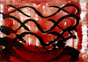 En aquest aspecte, la coincidència amb Frederic Amat és absoluta: malgrat que l’artista de Barcelona mai ha dissimulat els seus referents —que poden anar de Tàpies o Miró, passant per Lorca, Rilke o Brossa, fins als grafismes propis de les cultures mal anomenades primitives—, allò que el caracteritza, allò que ens el fa reconeixible en tots i cada un dels contextos en els que poden aparèixer els seus treballs, és el seu gust per un gest pictòric que troba en la taca recursiva i en els ritmes que li dicten els propis materials la seva sintaxi més exclusiva. La pintura de Frederic Amat és sempre una forma d’homenatjar a la mateixa pintura com, de fet, la bona poesia sempre és, en darrera instància, un intent de convocar l’inefable.