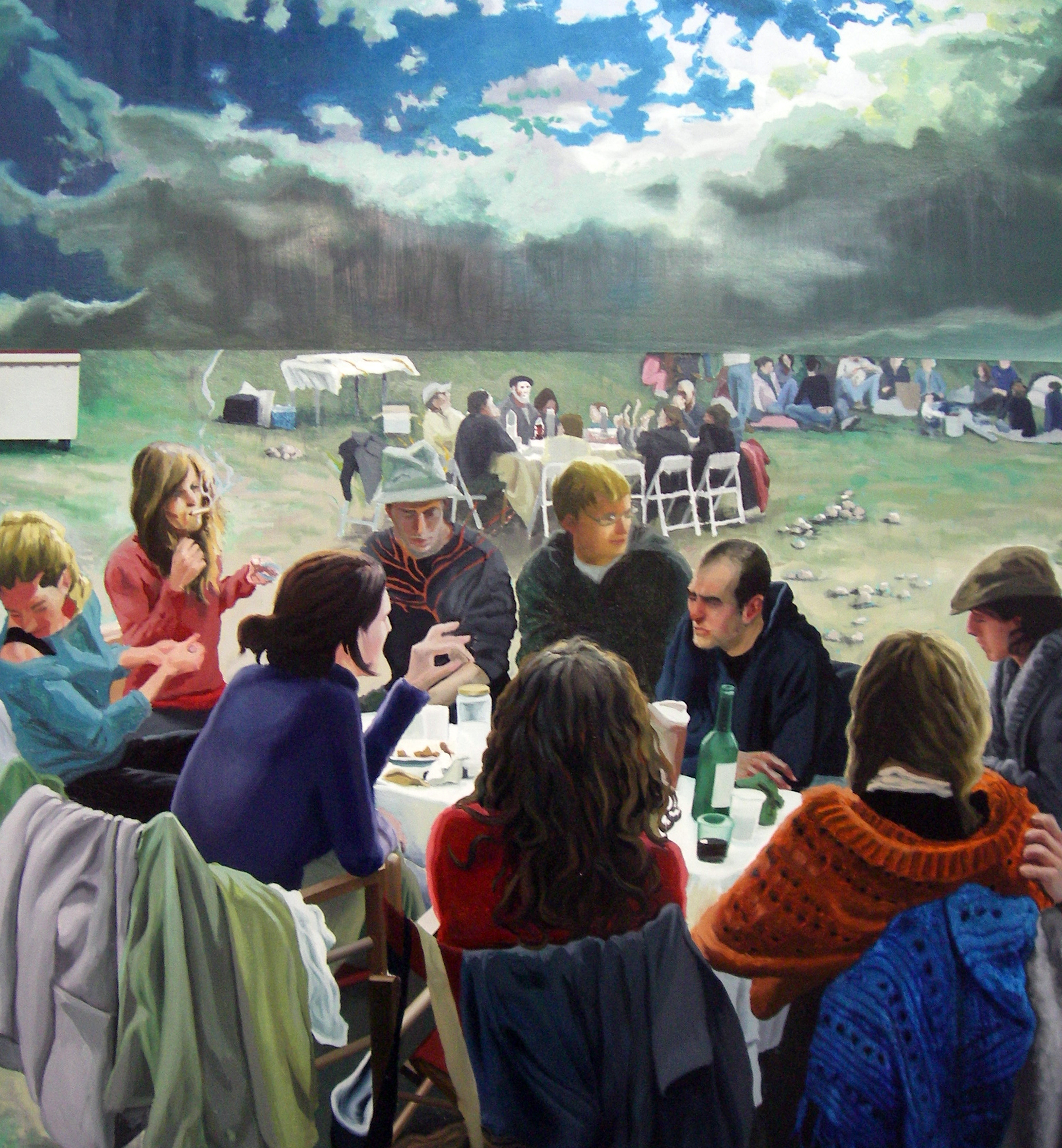 Pintors que ronden la quarantena, per tant, i que retornen al «banquet» entès com una forma de sociabilització i de coneixement, és a dir, en el sentit que li va voler donar Plató als seus diàlegs: els treballs de Manolo Sierra són, justament per això, al·legories poblades per personatges recognoscibles que porten a terme accions immediates que no deixen d’inquietar-nos, entre altres raons, per la tensió perenne que mantenen amb la natura-escenari que habiten i amb el mateix mitjà —la pintura— que, gràcies al seu gest ancestral i a la seva radical contingència, assaja d’atrapar-los. És, com diu Sierra, una qüestió d’estómac.