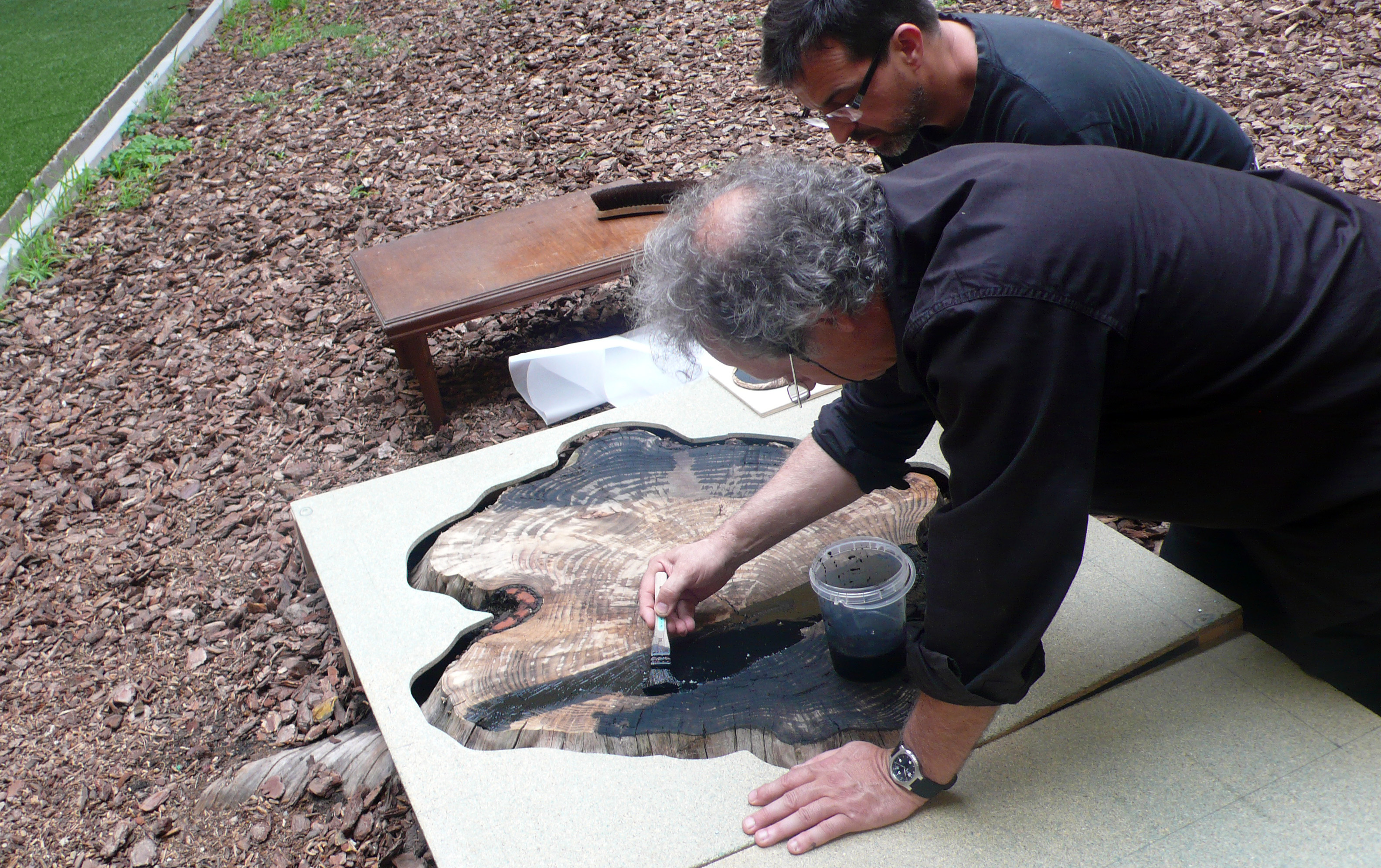 Enregistrar el temps que ha sedimentat en l’antiga soca seccionada d’un arbre inexistent —temps concèntric, expansió congelada que només pot retraure’s cap al seu passat d’arbre— i, a les antípodes del gest arqueològic, capturar l’ombra d’un arbre sotmès a un esdevenir que li és essencialment extern: Àlex Nogué porta a terme una acció que es defineix en els seus dos extrems temporals, l’extrem del temps petrificat i l’extrem del temps convertit en duració. Doble constatació: és possible conèixer l’essència temporal d’un arbre inexistent i, per contra, resulta impossible capturar el present d’un arbre que se’ns apareix, com a imatge, a plena llum del dia.
