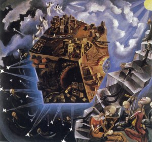 Ramón Gómez de la Serna (“La zeta és un siete que oye misa”) va ser un dels molts intel·lectuals atrapat a la xarxa d’una Ángeles Santos Torroella (Portbou, 1911) que donava la benvinguda a la seva majoria d’edat amb una obra, El món (1929), que va desconcertar l’estereotipada societat val·lisoletana del moment: aquell esperit indòmit “d’ulls blaus i violetes —en paraules de Gómez de la Serna—, de llavis pàl·lids i rostre torbat per desigs fugaços» va decidir, un bon dia, encarar al seu pare per demanar-li una gran tela amb la que havia de pintar “el món”. Poca broma: “Hi vaig posar [en aquella mítica obra] tot el que aleshores havia vist, intuït i observat. L’univers, el cel, les ànimes i el món tangible que coneixia, les ciutats, les cases, la vida, els trens, les platges, els rius, els cementeris…” Com en l’Aleph imaginat pel geni de Borges, aquella joveníssima artista va somiar que era possible, encara que només fos per un instant, descobrir la totalitat continguda en un sol punt: “La escalera del sótano es empinada —va escriure l’argentí el 1949—, mis tíos me tenían prohibido el descenso, pero alguien dijo que había un mundo en el sótano. Se refería, lo supe después, a un baúl, pero yo entendí que había un mundo. Bajé secretamente, rodé por la escalera vedada, caí. Al abrir los ojos, vi el Aleph”.
