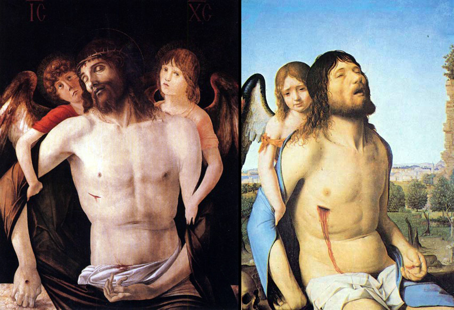 A Pep Aymerich li agrada una pintura d’Antonello da Messina que es pot veure al Museu del Prado: ens referim a la coneguda «Pietà» que el mestre sicilià va pintar pels volts de 1475, segons sembla, «versionant» deliberadament el «Crist mort amb dos àngels» que Bellini va realitzar 5 anys abans (actualment es pot veure a la National Gallery de Londres). De fet, no cal ser cap especialista en iconografia per detectar, des d’un punt de vista compositiu molt elemental, les similituds entre les obres de Messina i de Bellini, unes semblances que troben el seu punt de màxima intensitat en la manera com un mateix àngel subjecta el braç del crist mort cenyint-li el mantell a l’alçada del colze dret. Malgrat aquestes «coincidències», historiadors de l’art com Peter Humfrey han assenyalat la distància evident que separa ambdues pietats: «Mentre que la composició de Bellini és deliberadament plana i simètrica, i el cos de Crist ingràvid, ja més esperit que cadàver, Antonello dóna un biaix a la figura respecte al pla que accentua amb força el seu pes material. Messina, a més, lluny de suavitzar les petjades del patiment emocional i físic, ho recalca en les llàgrimes que regalimen per les galtes de l’àngel, i més encara en la sang que raja amb abundància de les ferides de Crist. El propòsit d’aquest realisme intens, escandalós fins i tot, era sens dubte inspirar pietat i dolor al cor de l’espectador devot. Alhora, el virtuosisme tècnic d’Antonello, que es fa palès en detalls com l’ala multicolor de l’àngel, el reflex de la llum en els seus cabells, les seves llàgrimes i el radiant paisatge de la llunyania d’inspiració flamenca, denoten que l’obra es va fer per a un client de notable discerniment estètic».