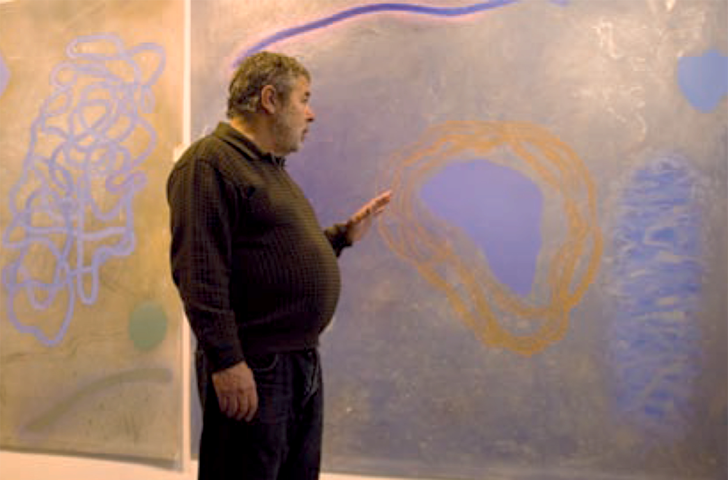 El seu color és el blau. Potser per això viu i treballa entre Badalona —que és a tocar del mar— i Sant Joan de les Abadesses —que és molt a tocar del cel—, perquè aquest color és perfecte per abismar-se, per flirtejar amb l’infinit d’on provenim i, des d’una òptica estrictament genealògica, per vindicar artistes com Miró —blau entre els blaus— i, si fem cas al que escrivia Xavier Barral a la seva Reivindicació del blau en exordi, a tota una manera de fer —i mirar— tan catalana com mediterrània: «Jo veig l’art català de color blau. El modernisme de rajoles trencades i