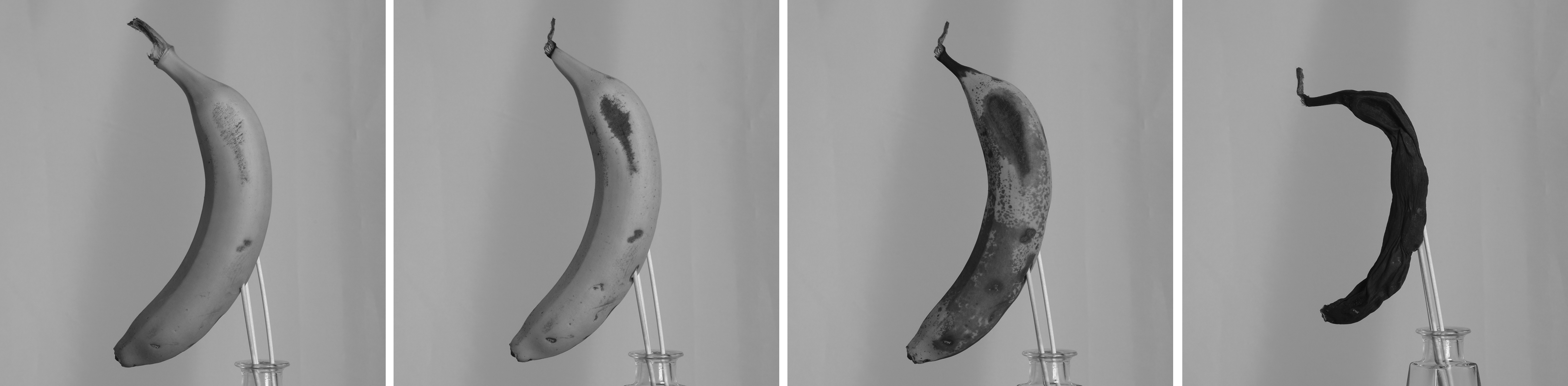 Potser per això la darrera sèrie fotogràfica de Pere Formiguera va estar dedicada a un simple plàtan: perquè la mirada de l’artista va saber traslladar la pròpia experiència de la finitud —i de la progressiva degradació de la matèria— a una fruita tan anodina com vulguem però, al cap i a la fi, tan subjecta als imperatius del temps com nosaltres. La seqüencialització, malgrat ser un recurs més propi del cinema, esdevé en mans del fotògraf un arxiu de moments, un inventari d’estats de la matèria que, al final, acaba essent una gran reflexió sobre la mort. Sigui com sigui, la gràcia de tot plegat rau en una forma molt subtil de recursivitat que desemboca en efímeres resurreccions. O, com diria el gran William Faulkner: «La finalitat de tot artista és aturar el moviment, és a dir, la vida, amb mitjans artificials i mantenir-lo fix de tal manera que, cent anys més tard, si un estranger el mira fixament, es mogui altra vegada, perquè és, precisament, vida».
